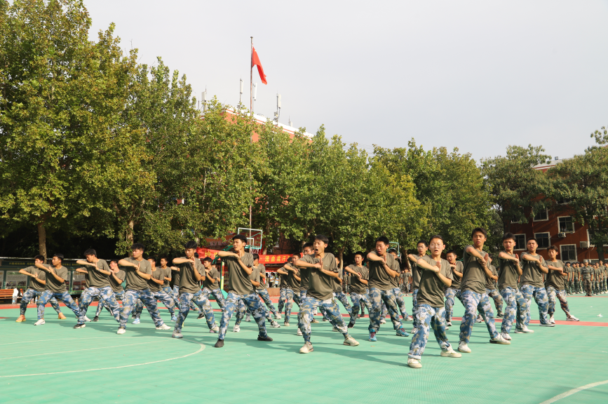微风拂去军训期间的末一滴汗水,不觉间,时间便从滴落的汗水边溜走,从紧贴裤缝的双手边滑过,从紧绷的脚尖旁路过。转眼间山东万通技工学校2022级新生军训来到了汇报演出的现场。